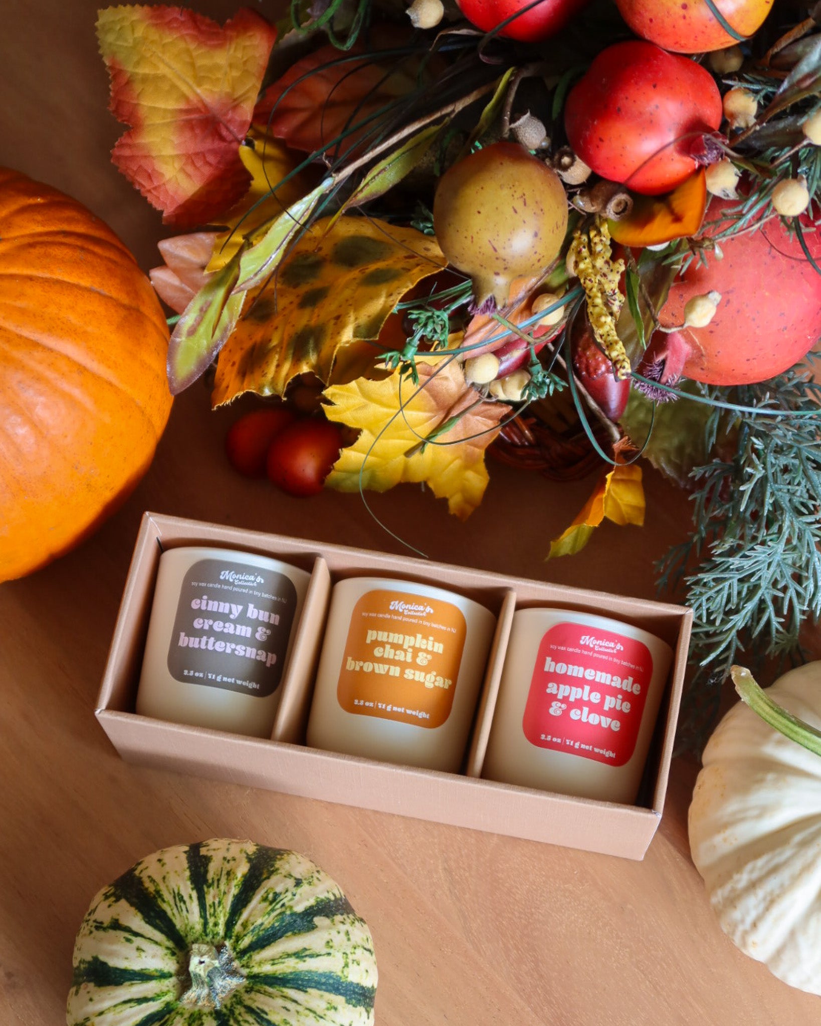 Snuggle up with mini sizes of the coziest sweet scents of the season, packaged up in a luxurious gift box. Scents include: