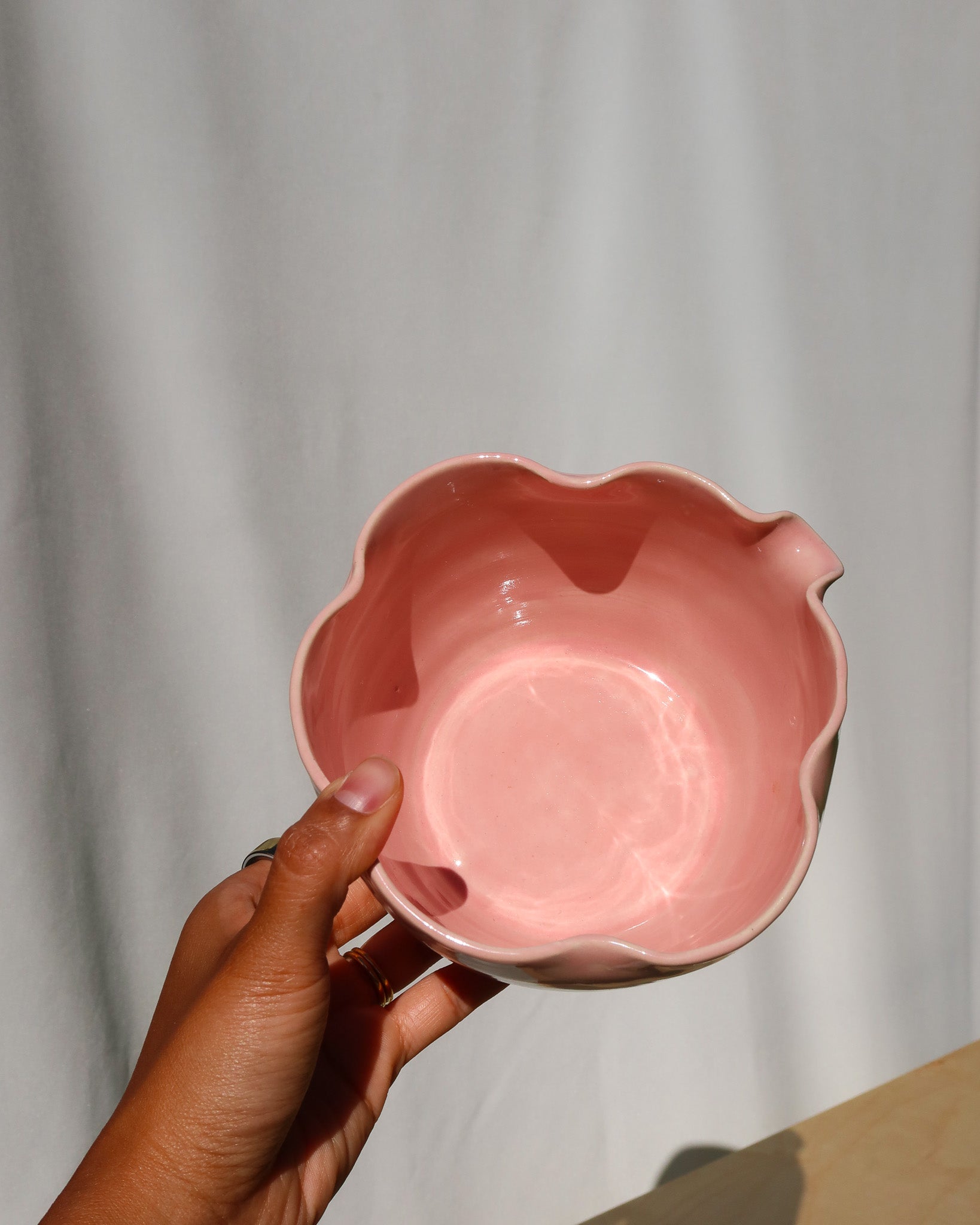 Your new favorite handcrafted pink matcha bowl. Traditionally called a "chawan", this matcha bowl is perfect for whisking your ceremonial morning matcha. The pouring spout makes it easy to transfer your matcha in your your mug of choice. The pink glaze perfectly matches all Monica's Collective Tumblers.